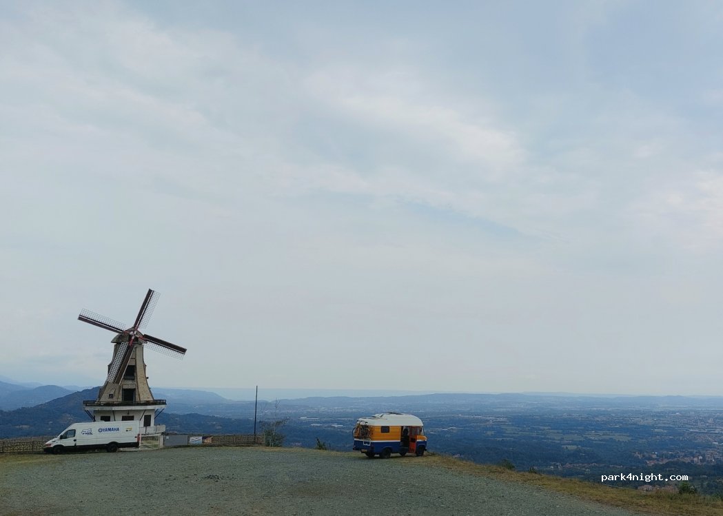 Mulino Val, unico mulino olandese in Italia. Parcheggio libero, é possibile passarci la notte. La strada per arrivare non é asfaltata ed é in salita. Solo auto alte o 4x4 possono raggiungere il mulino. Bellissima la vista. É presenta una fontana e un’area picnic leggermente sopra il parcheggio.