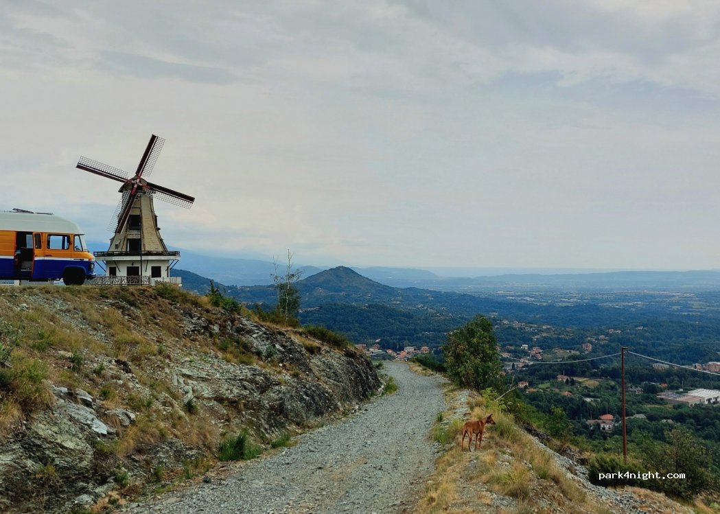 Mulino Val, the only Dutch mill in Italy. Free parking, it is possible to spend the night there. The road to get there is not paved and is uphill. Only tall cars or 4x4s can reach the mill. The view is beautiful. É features a fountain and picnic area slightly above the parking lot.