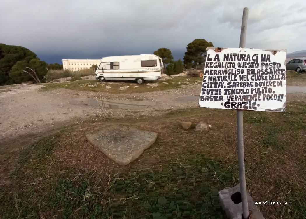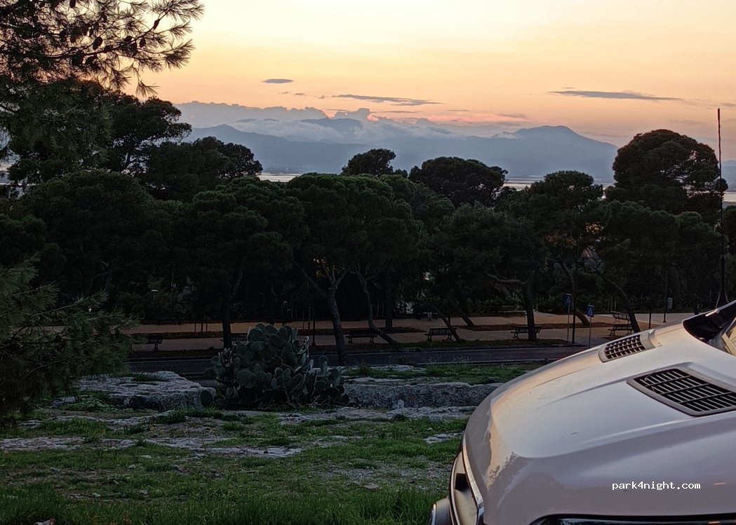 Guter Parkplatz, direkt im Zentrum auf dem höchsten Punkt von Cagliari, ca 1,5km zu fuß vom Zentrum entfernt. Haben hier eine Nacht mit zwei Vans verbracht. Am Wochenende sehr belebt. Treffpunkt für Einheimische. Frischwasser gibt es ebenfalls an der anliegenden Straße am Park.