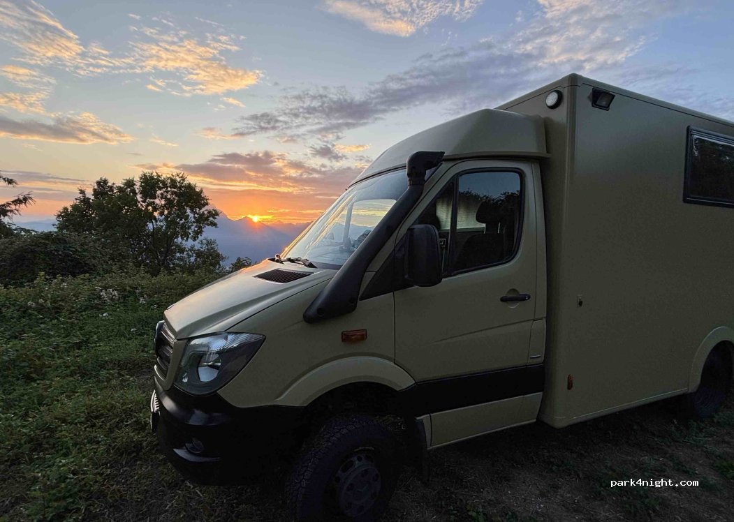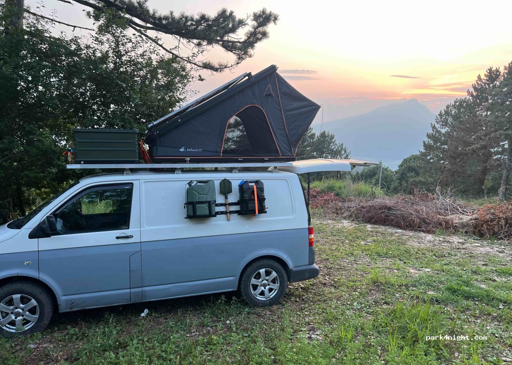 Klidné místo s částečným výhledem na Gardu. Nutno vyrovnat auto, jinak budete spát našikmo. Vhodné pro 2 auta, lavička je zničená.
