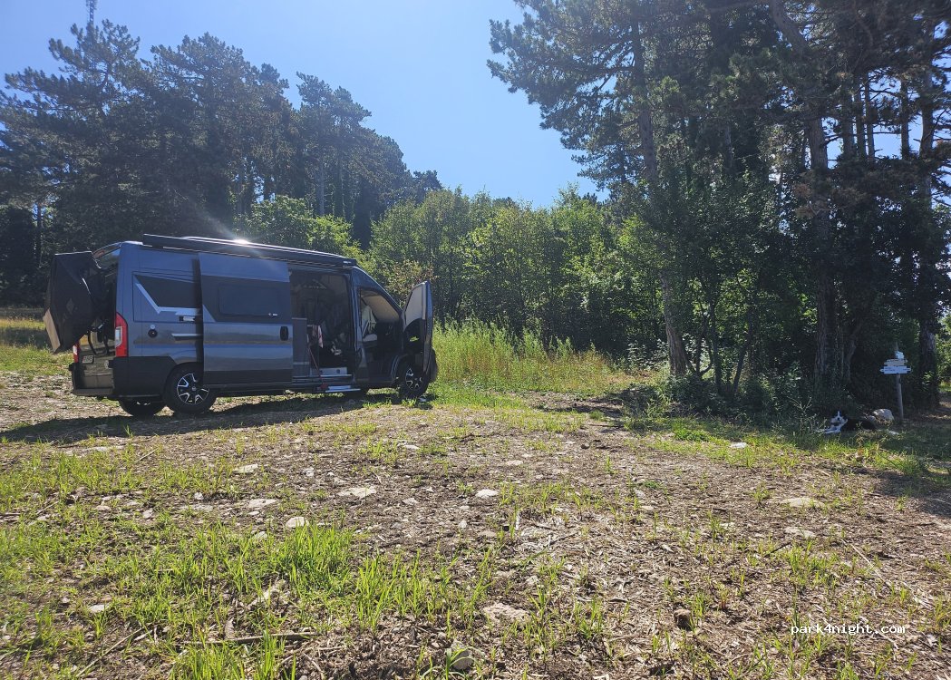 Schöner Parkplatz in der Natur. Leider total schräg, keine Option zum übernachten.