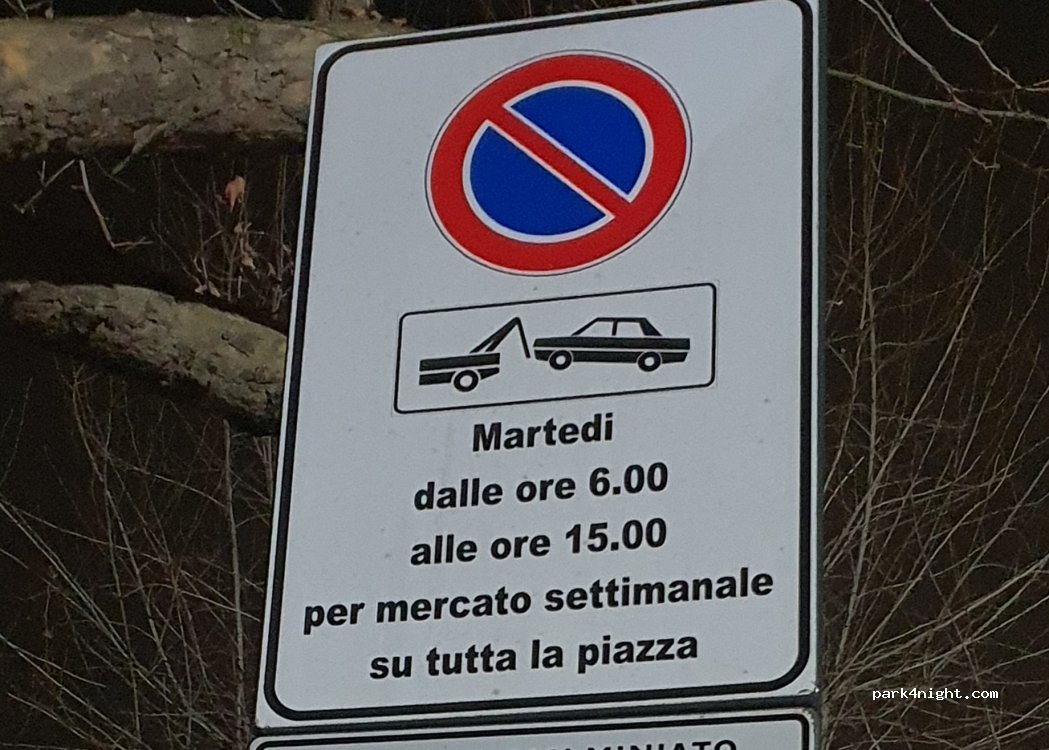 divieto di sosta tutti i martedi dalle ore 6.00 alle ore 15.00 per allestimento del mercato.