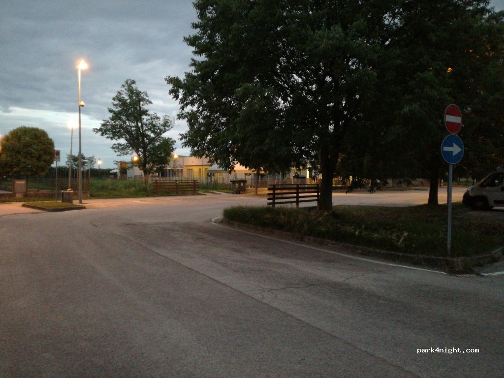 Ampio parcheggio presso il complesso sportivo. Notte in pace. Gli abitanti camminano lì. Centro paese a 250 m.