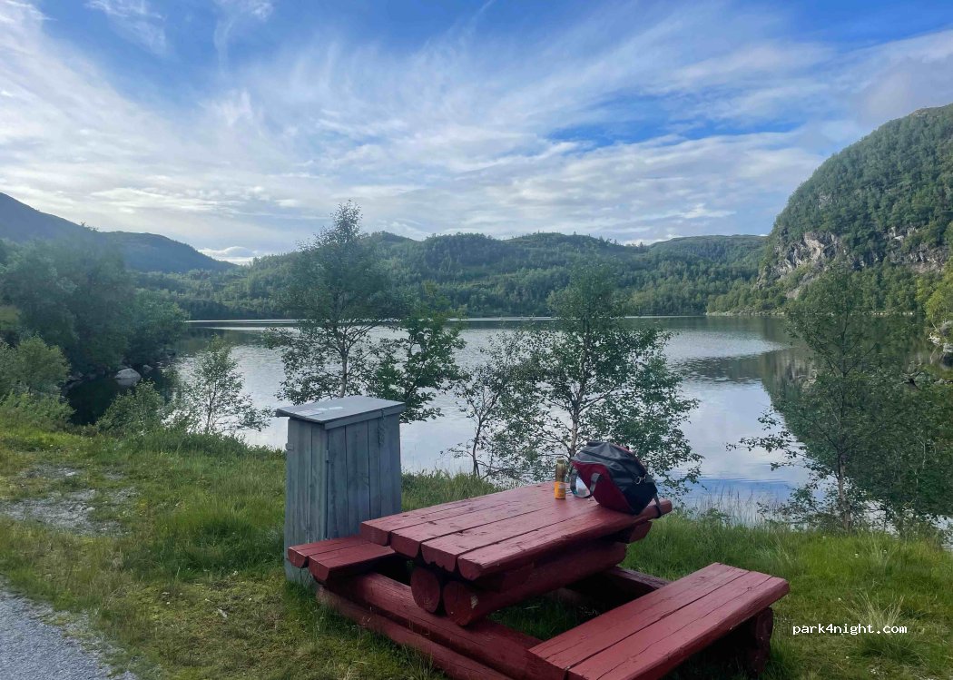 Lieu exceptionnel ! Calme absolu. Un des meilleurs spots jusqu'ici. La route vaut le détour: sinueuse avec une vue magnifique au départ de Vadheim.