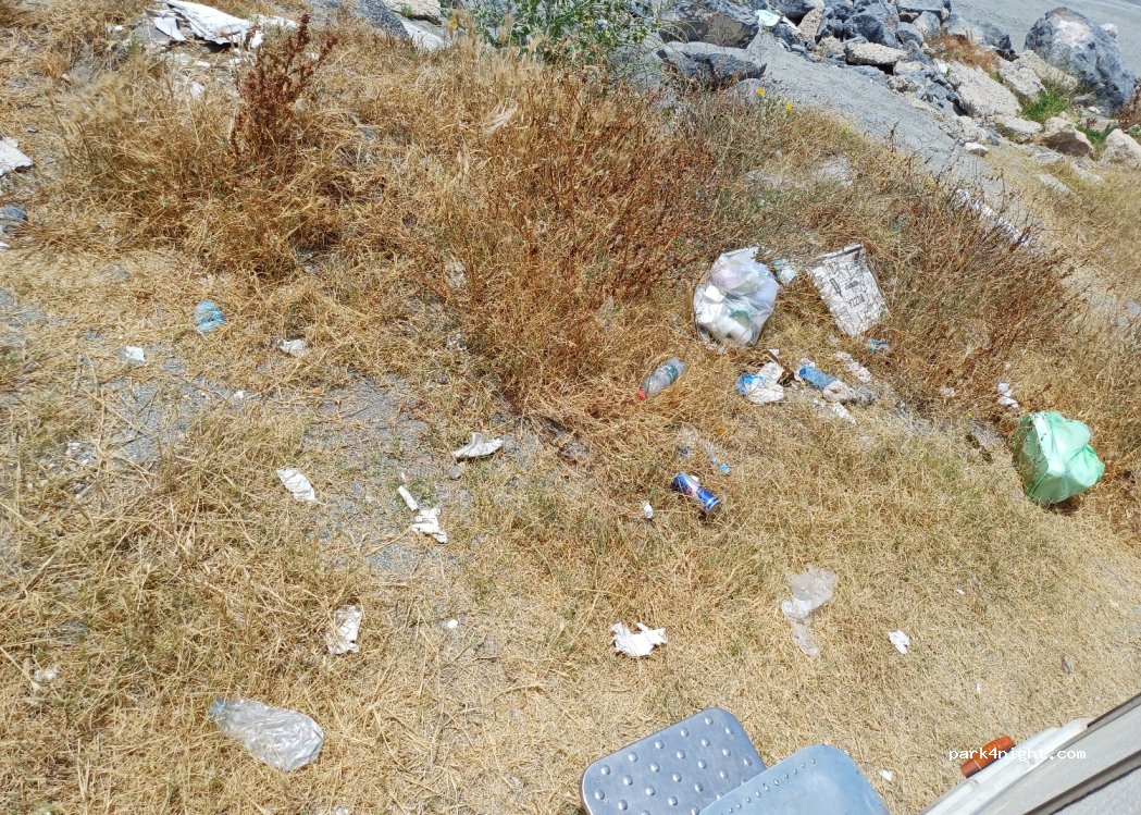 there were few people on the beach, which was nice, showers are available for €0.50 right next to the bar and there is also a beach for dogs. there were few cars in the parking lot, so it was perfect for sleeping. The sunrise is over the hill, so it doesn't disturb the morning sleep. unfortunately, there is no possibility to dispose of garbage, so they are thrown in the parking lot.