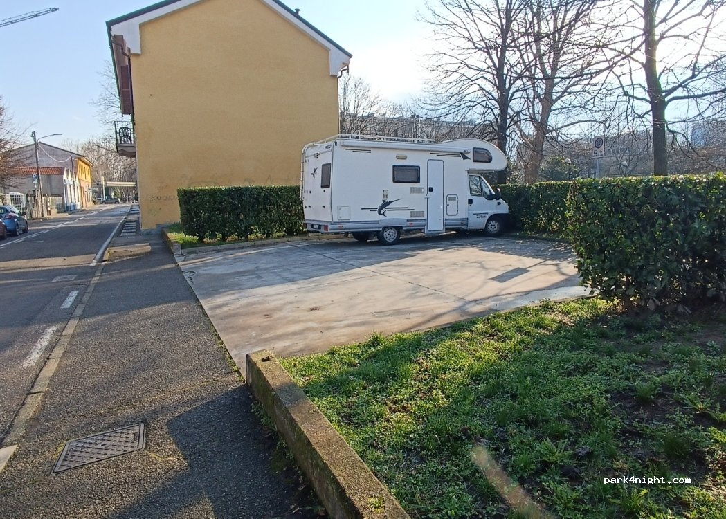 Parking pour 3 mobil-homes dans la commune de Saronno, gratuit. Stationnement autorisé pendant 24 heures maximum. L'accès par la rue à sens unique jusqu'à au moins 7,5 m de camping-cars est facile.