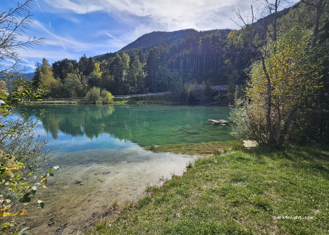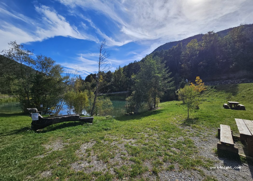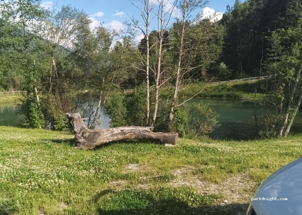 Charmante petite zone de pique-nique herbeuse au bord d'un étang. 3 tables de pique-nique en bois 1 point d'eau aménagé dans un tronc d'arbre. Calme à l'écart de la route principale.