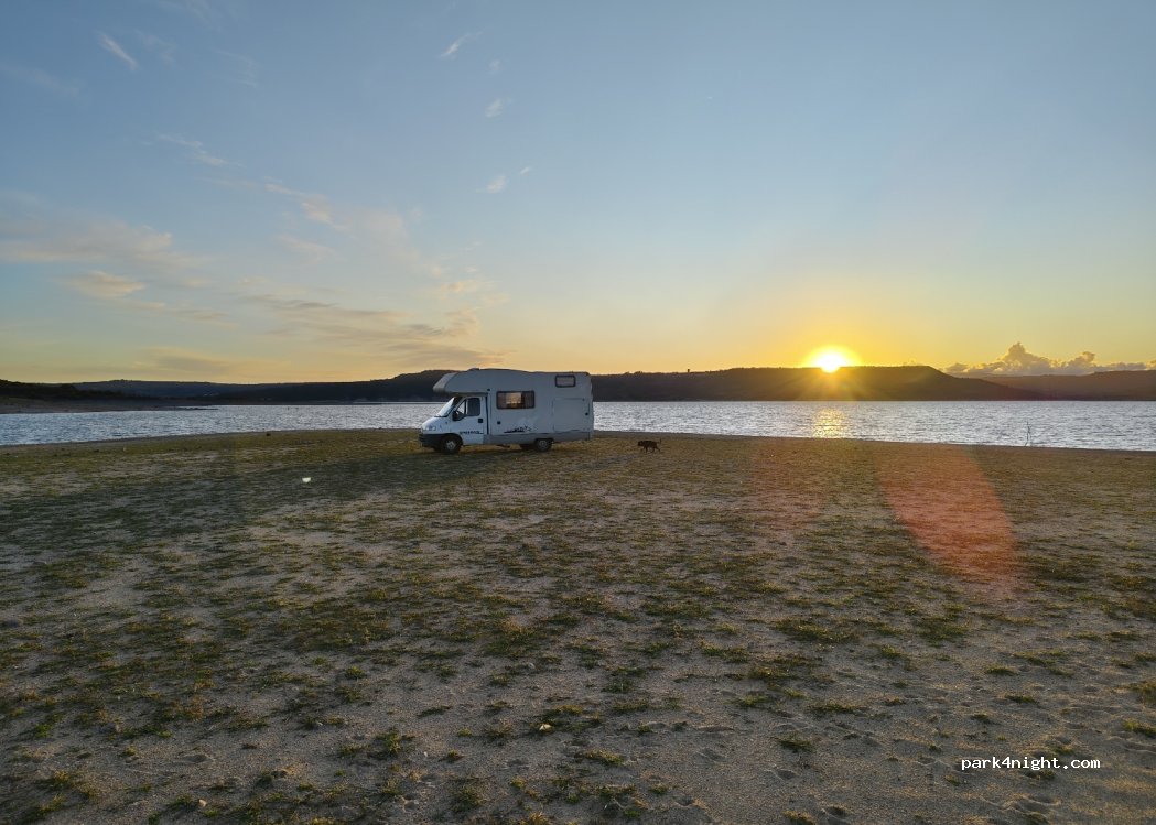 Parking space directly on the east bank of Lago Omodeo, This beautiful parking space is located behind an abandoned / disused campsite. It can be reached with any vehicle, although it gets sandy the closer you get to the lakeshore. The access via the campsite is a bit overgrown. Swimming in the lake possible.
