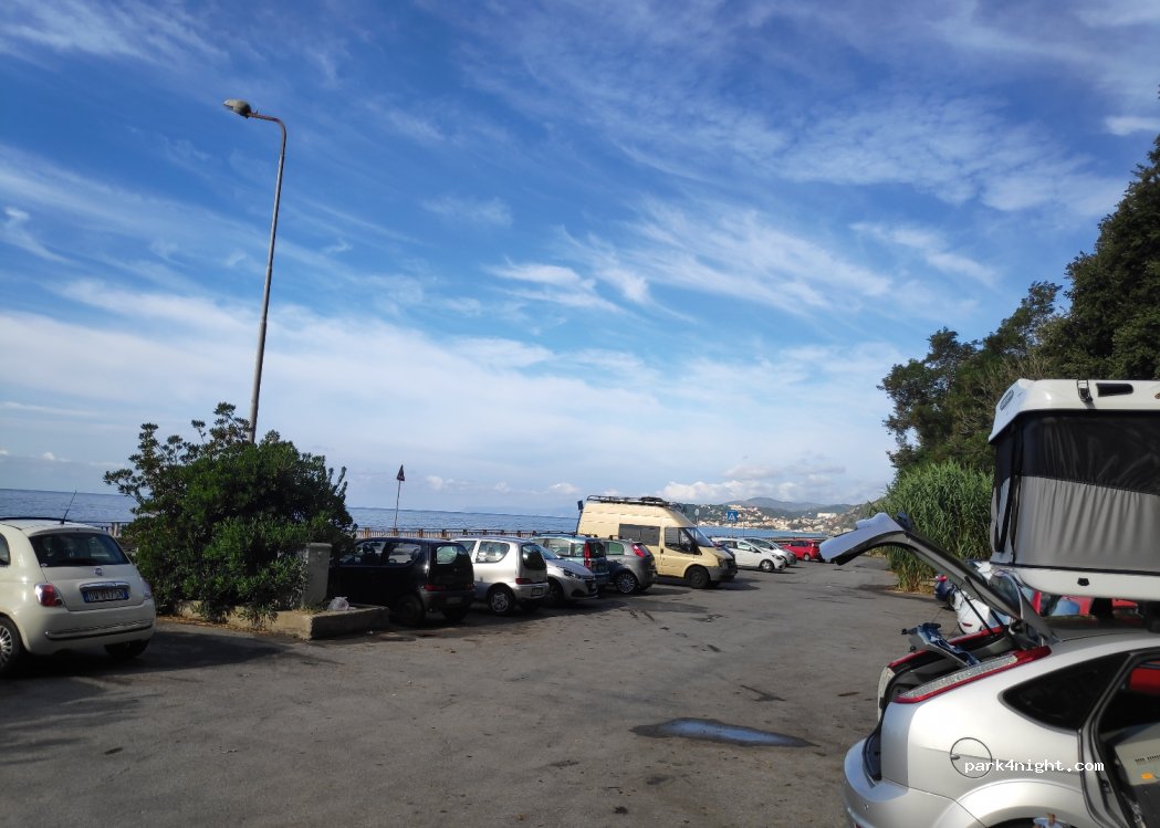 Free parking lot 2.1m barrier where you can sleep at night. We stood here one night and two others. Right on the street from 7 a bit louder but that didn't bother us. Great sea view.