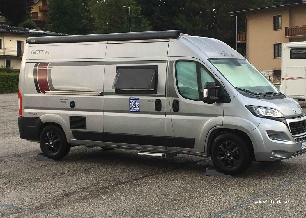 Con 5€ parcheggio di 24h molto tranquillo con grosso supermarket a 300mt, leggerissima pendenza regolabile con i rialzi come in foto allegata.
