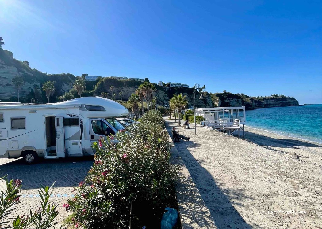 Toller Parkplatz direkt am Strand und im Winter völlig gratis (Parkscheinautomaten waren zugeklebt). Sehrte empfehlen für einen Besuch von Tropea (10 min zu Fuß) und eine ruhige Nacht)