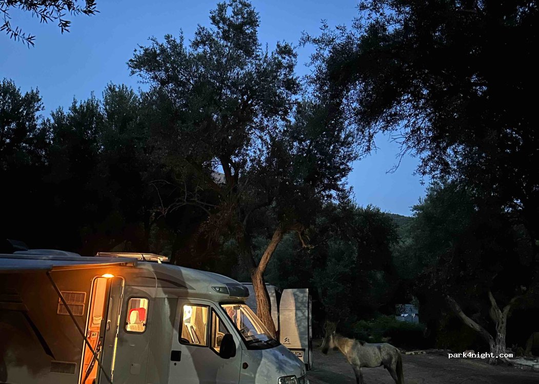 Ein schöner Platz am Meer unter Olivenbäumen. Auf dem Platz gibt es freilaufende Pferde. Diese sind aber keine Gefahr, sehr ruhige Tiere. Sie hatten immer genug Abstand. Gegen eine Gebühr von 10 Euro steht man hier fast am Meer. Am Kiesstrand hatten wir sehr klares und warmes Badewasser. Sunset. Wasser und Toilette landestypischen vorhanden. Tagsüber gibt es hier Badebetrieb und eine Wirtschaft.