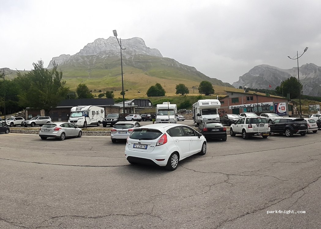 Kostenlose Parkmöglichkeit für Ausflüge zum Corno Piccolo/Grande. Wer früh da ist bekommt definitiv einen Parkplatz. Tagsüber sehr voll. Für eine Nacht OK. Ist mitten im "Dorf". Wasser gibt es am Brunnen neben dem Gran Sasso Hotel. Leider keine Mülleimer vorhanden.