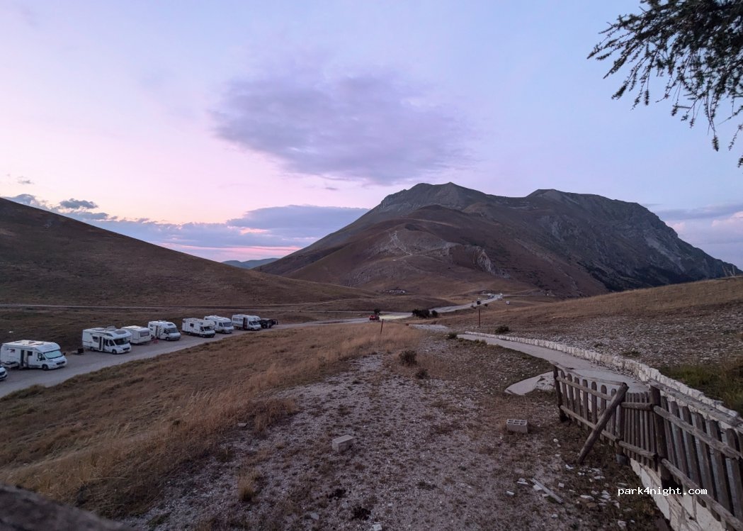 Parcheggio ampio e tranquillo, molto panoramico. Ottima visuale sul monte vettore. In fondo al parcheggio inizia una bella passeggiata pianeggiante di 3 km tra i pascoli. Nessun servizio, no illuminazione