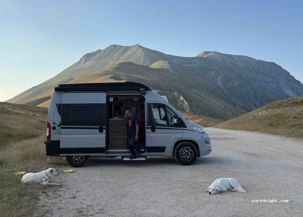 Parcheggio in piano su sterrato ben tenuto ai piedi del Monte Vettore, situato di fronte al rifugio ANA degli Alpini. Gratuito. NO ELETTRICITÀ, NO ACQUA, NO SCARICO.