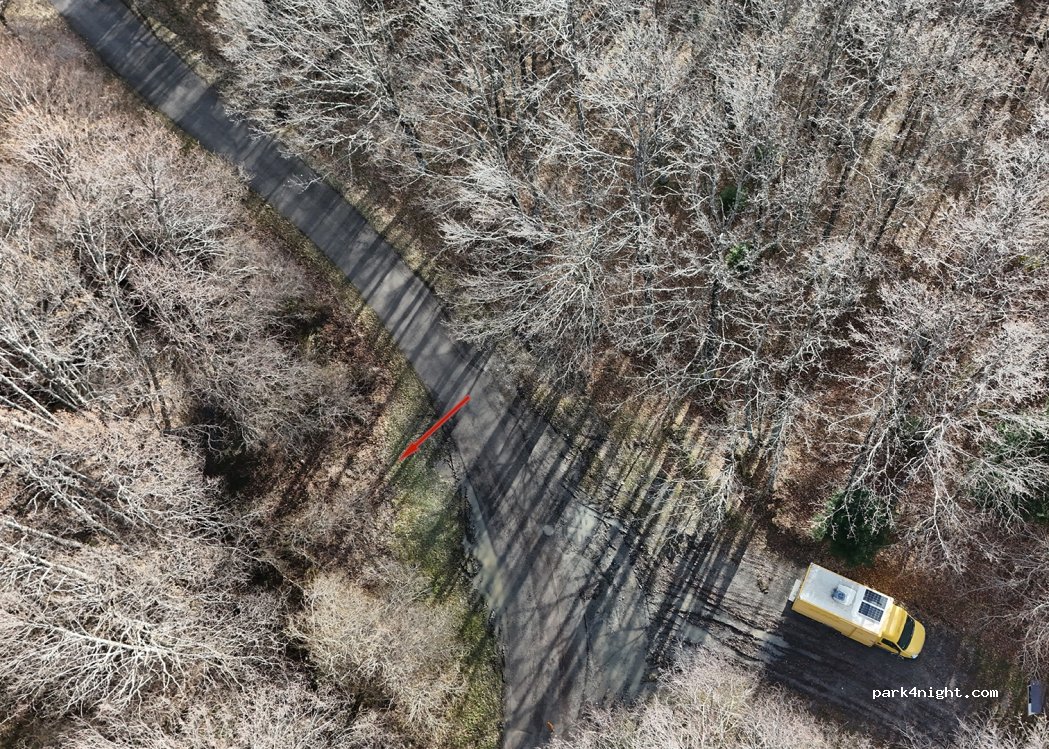 Aire plate à côté d'une belle aire de pique-nique. Endroit parfait pour passer la nuit au frais (été) et sans aucun bruit.