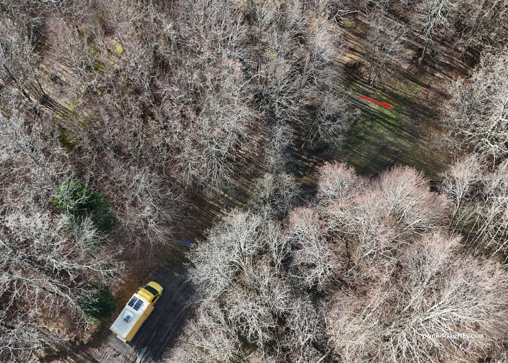 Flacher Bereich neben einem schönen Picknickplatz. Perfekter Ort, um die Nacht im kühlen (Sommer) und ohne Lärm zu verbringen.