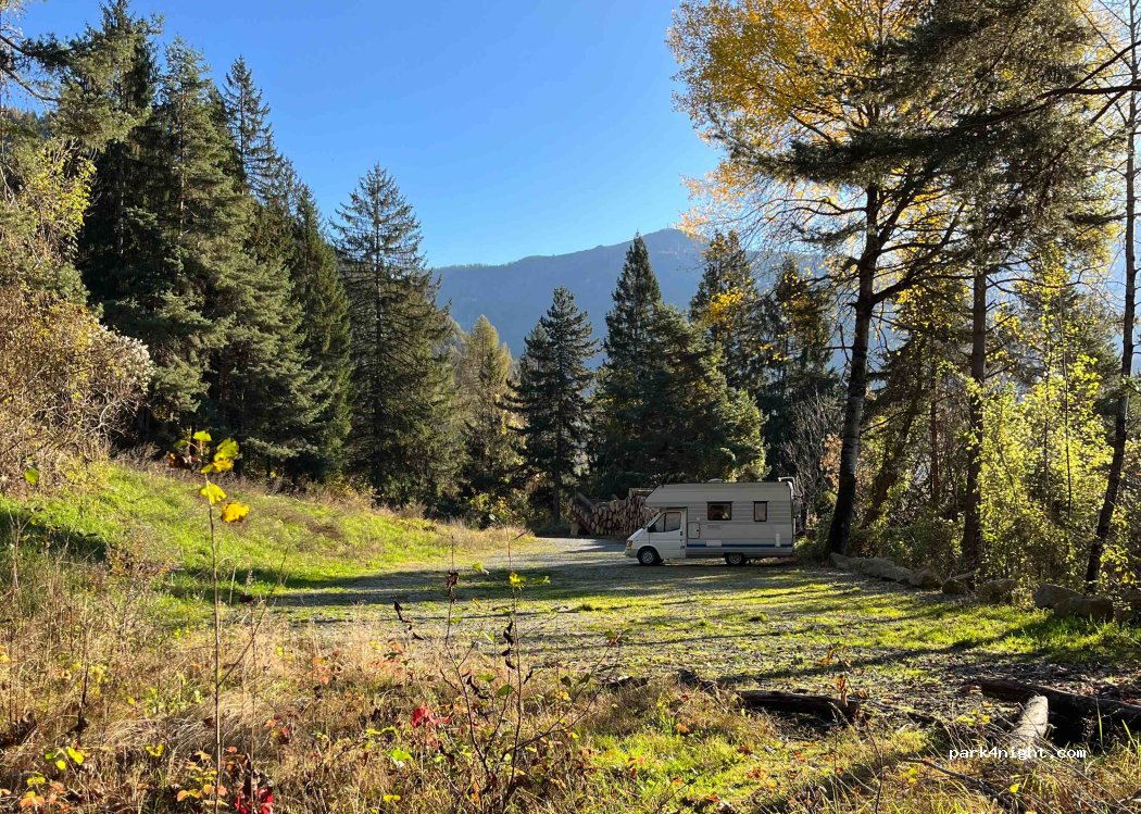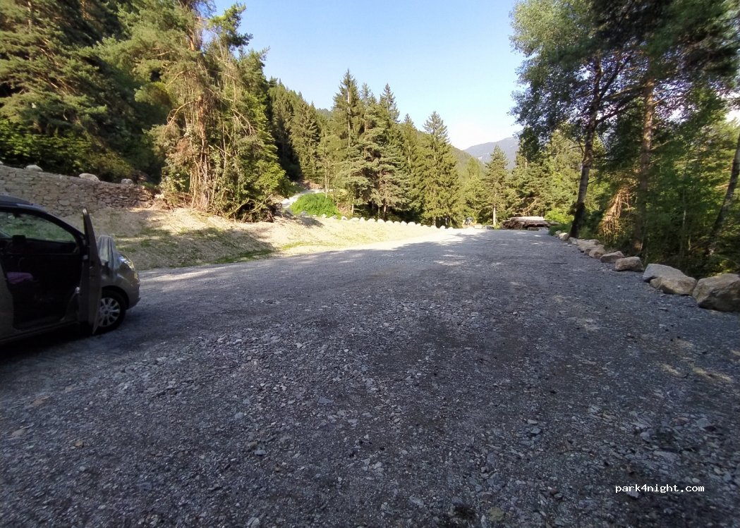 New parking at the beginning of the Val di Genova. Wide and level space. No ban on the current date, already shaded from the afternoon. Beware of the narrow road with excessively large campers !!