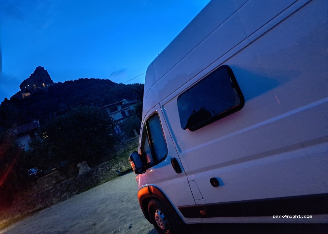 ho dormito qui una notte. posto tranquillo. dal parcheggio parte un sentiero nel bosco e tempo 20 min si raggiunge la sacra. punto di partenza anche per altri luoghi di interesse turistico. sulla strada che porta alla sacra sono presenti cartelli che vietano il transito in senso opposto x veicoli di larghezza sup a 2 m.