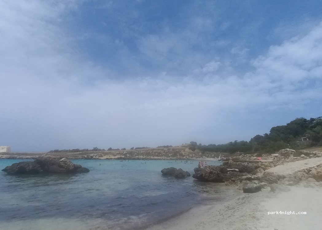 baia stupenda protetta da venti del sud, piazzola buone dimensioni con vista sul mare e ombreggiata. manca la doccia in spiaggia e acqua in piazzola. bidoni immondizia molto lontani. per il resto raccomando fortemente. abbiamo un camper con autonomia 3 o 4 giorni. verso sud a 4, km ci sono altre due aree sosta senza ombra su sterrato.