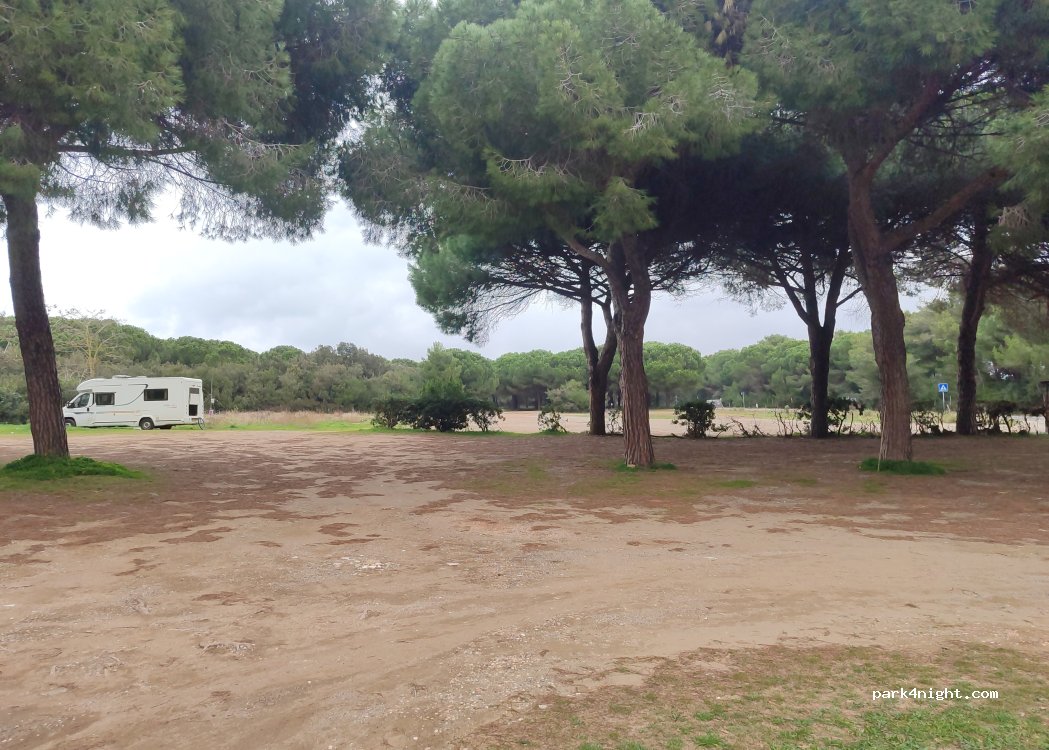 in estate la pineta che circonda il parcheggio lo mantiene estremamente caldo anche per gran parte della notte. molto polveroso e il costo si 15 euro per la giornata lo rende poco attrattivo. il mare a 30 metri con la possibilità di portare il cane però ci ha convinti a fermarci. nel complesso una buona esperienza.