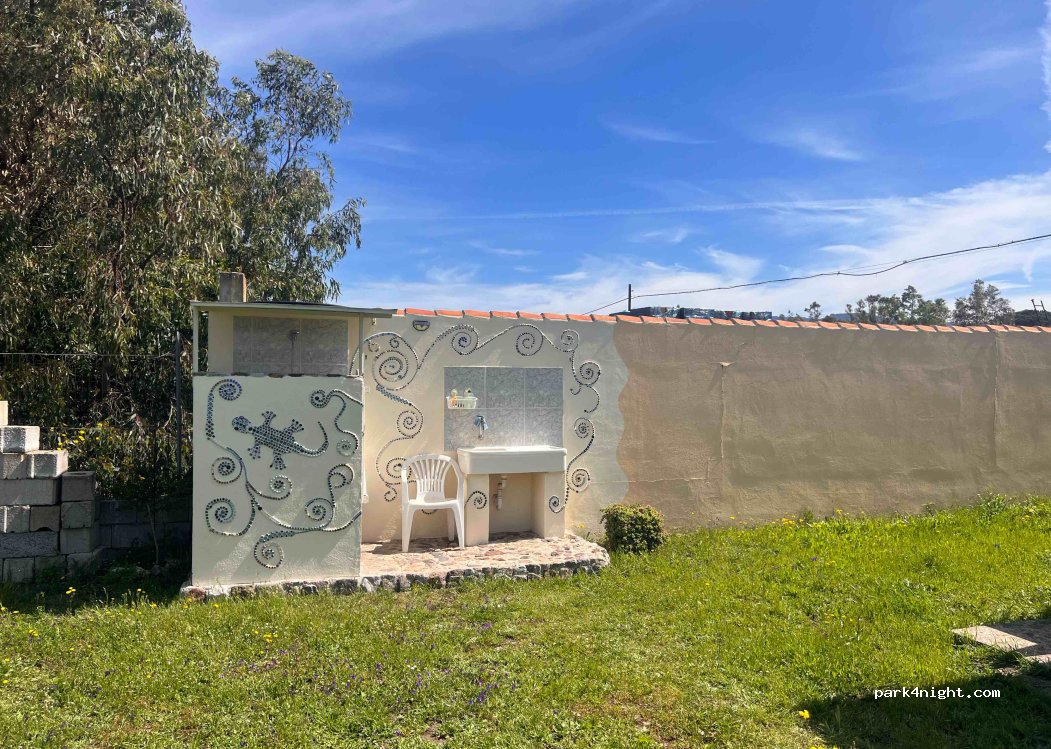 Marrubiu is a town with around 5000 inhabitants, around 10 km from the beach and 1 km from the motorway exit. On the right side (left coming from Marrubiu), there are 2 houses. The house on the left is a shell, the one on the right is us. Watch out for the Italian flag!!! There is a dirt road in between. Drive about 30 meters to the gate. Our private parking lot is about 1 km from the town center and is very easy to reach on foot. The place is on our inhabited property which is secured by a fence and a lockable gate. The parking lot is about 200 square meters (for a total of 3 parking spaces). Our outdoor shower (solar energy) and our sink can be shared (no toilets). Our place can be reached on foot and has a train station, bakery, butcher and supermarket.