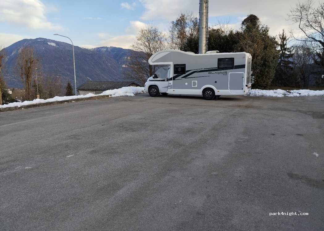 Parking à deux pas du centre d'Enego. Pas de service mais éclairé et calme, idéal pour une nuit qui passe.