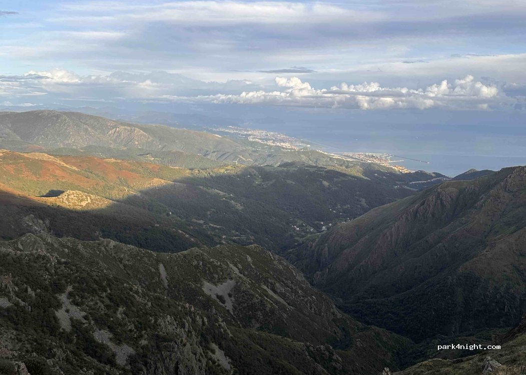 Amazing view over Genova, the coast, and the mountains. Some cars passing but not very much, strong and cold wind, only 20 min from Masone. 5-6 different spots along the street where you can stay for the night.