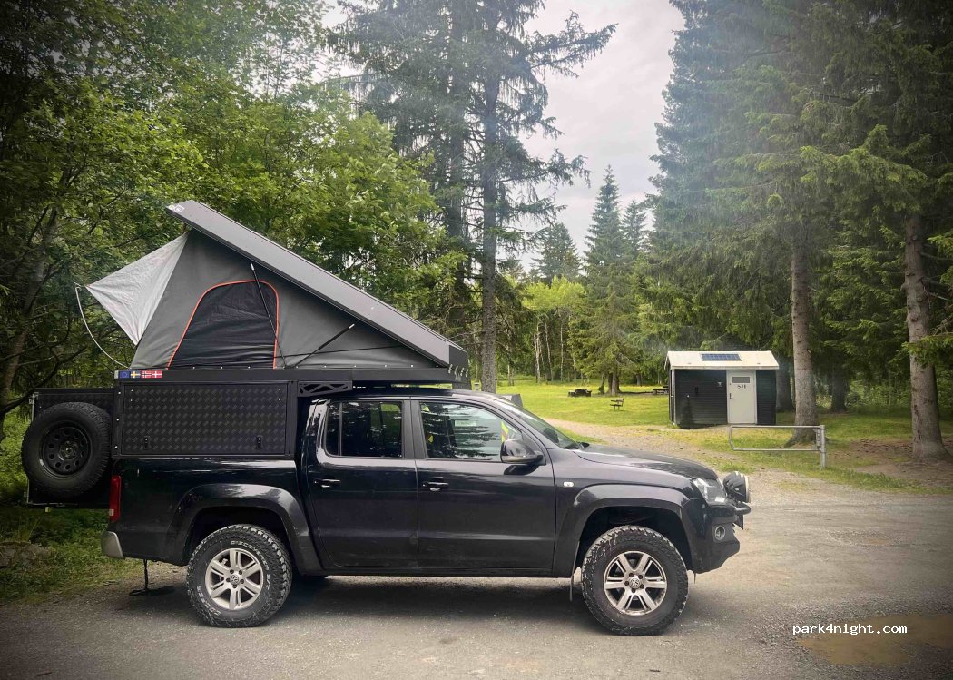very quiet place close to trondheim. perfectly set us up for visiting the stormfossen waterfall the next morning (~30min away). in the morning some locals come to walk their dogs and/or jog, so be sure to not park in front of the main entrance to the park. has toilets (which were unfortunately closed for us throughout the whole stay), a lake nearby and trash bins.