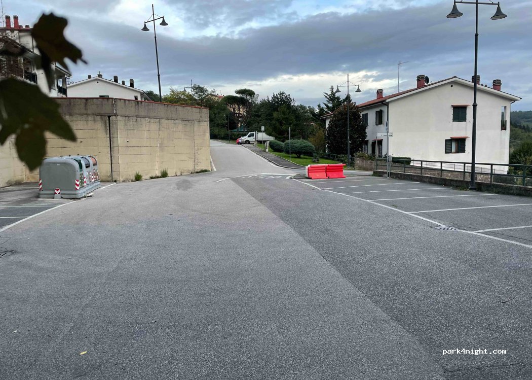 Panoramic parking on the Florentine valley. Very quiet spot among the houses of the village. Near the public water fountain, bars, restaurants and food. Shaded by pine trees.