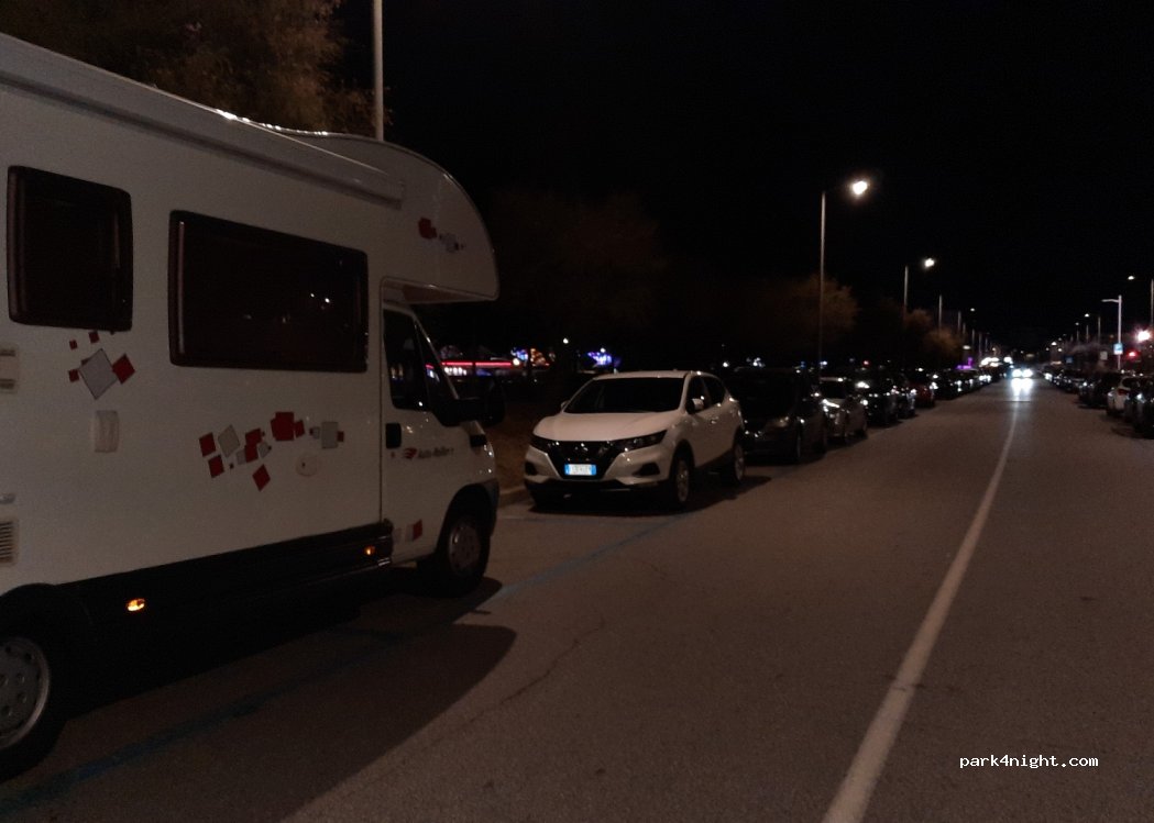 Parcheggio in un piazzale e anche lungo la strada, tollerato per i camper con un sovraprezzo del 50 % ( 1,20 euro\ora)
