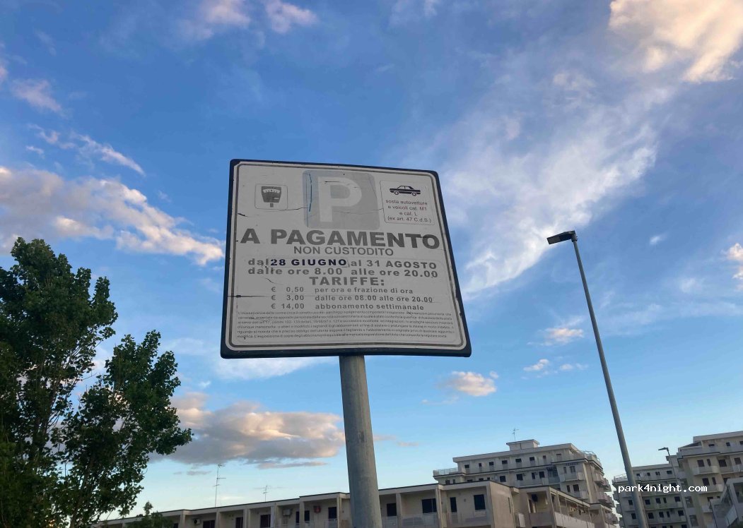 parcheggio gratis da settembre a giugno. sterrato, senza servizi ma comodissimo per la spiaggia e come punto di partenza per visitate i paesini intorno. siamo stati benissimo