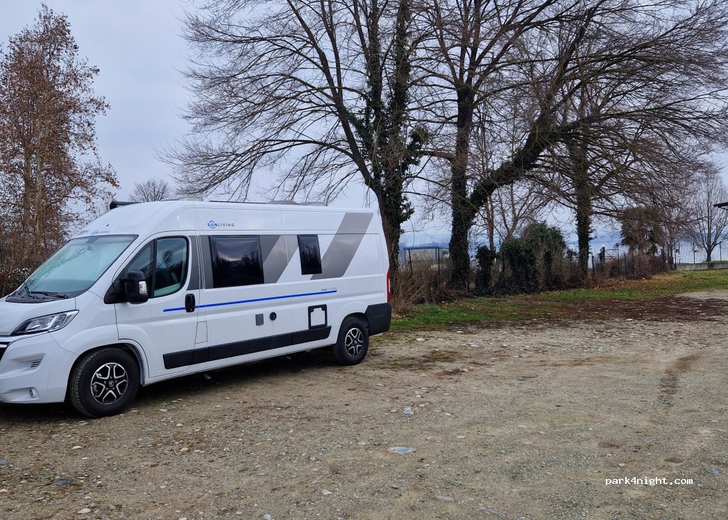 Difficile à trouver. Attention au gabarit : pour les plus de 2m50 de haut il faut accédez au parking depuis le village Caluso et non pas par Candia. Via Caluso il y a aussi un panneau de limitation de hauteur annoncé à 2m50 aussi, mais la limitation prend effet quelques mètres après le parking. Il s'agit en faite du parking de la piscine. Gratuit et à plat. légèrement ombragé. accès au lac juste à côté, pizzeria à côté aussi. Calme la nuit, nous étions seuls cette nuit là. Attention aux moustiques.