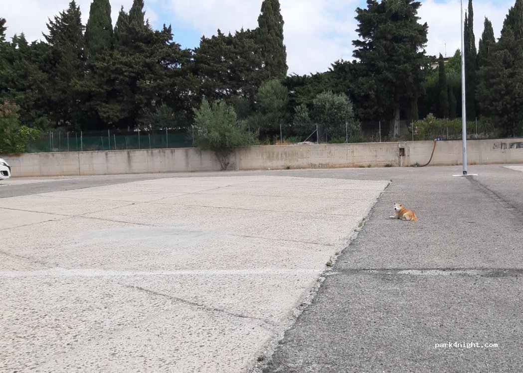 Large parking place , mostly under the sun. Quiet. We were the only one to sleep there but it is clear a place where you can stay, nobody will complain.