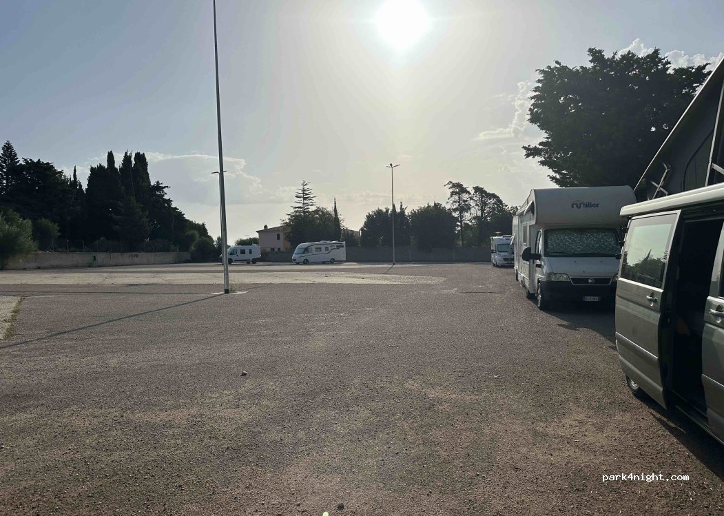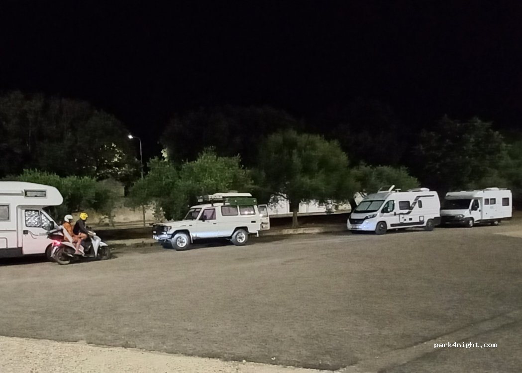 Very big parking area, about 10min walk to bar/restaurant streets of Orosei. We parked far away from the street, so no noise problems. But we missed the shadow spot in the morning, that is the side closest to the center (entering the area and directly on the right part)
