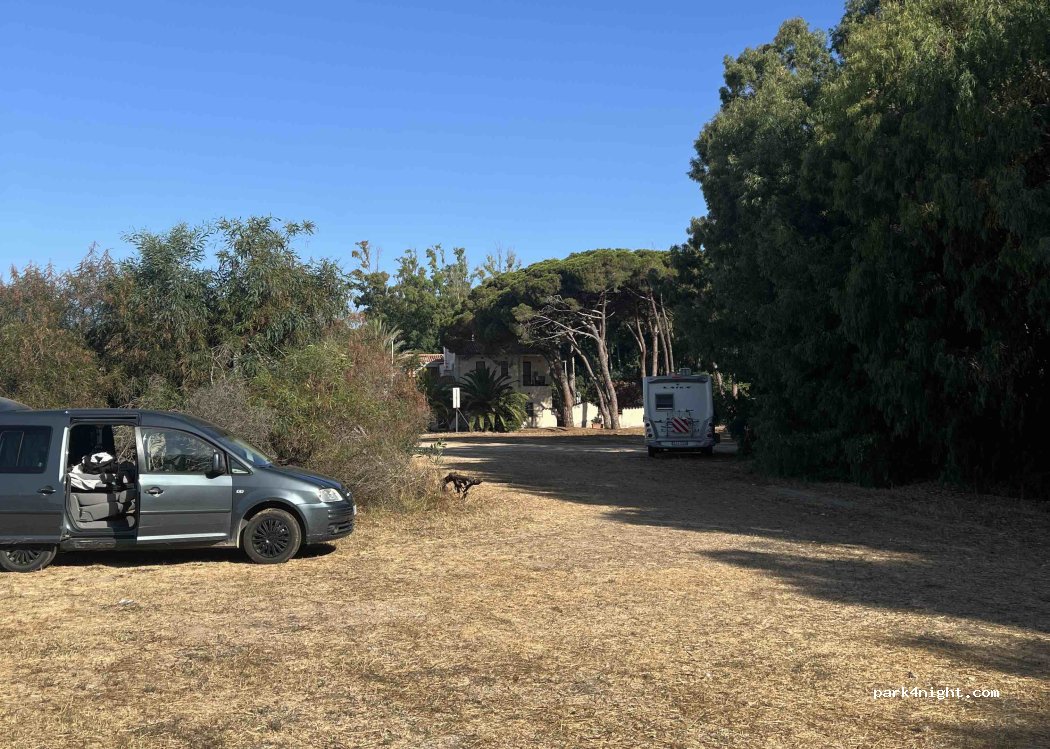 Bom parking grátis para passar a noite, tem um pouco de sombra, não tem lixeira, fica perto da praia e do centro da villa.