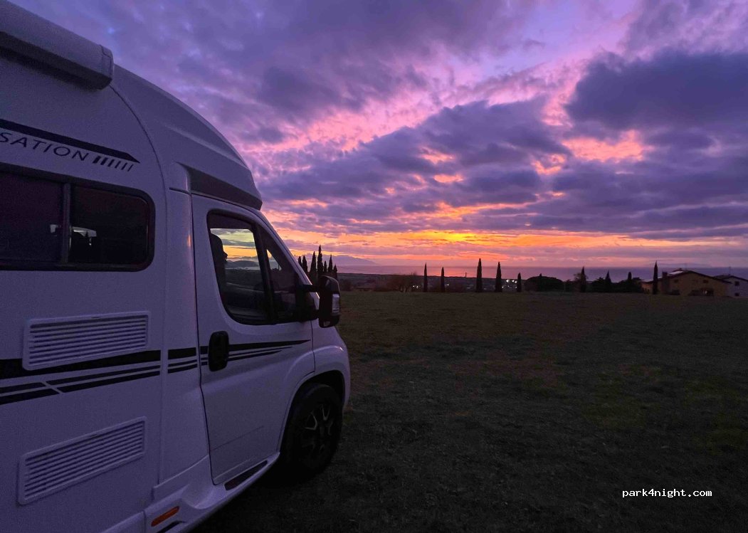 Ottima sosta sulle colline sopra San Vincenzo (2,5Km circa). Vista spettacolare. Pietro il titolare persona squisita. Buon agriturismo per mangiare a 100mt. Carico ed elettricità in piazzola, scarico comodissimo. Possibilità di Chiamare taxi per San Vincenzo circa 10€. Molto consigliato.