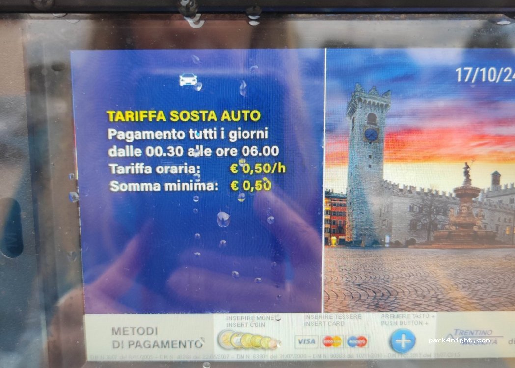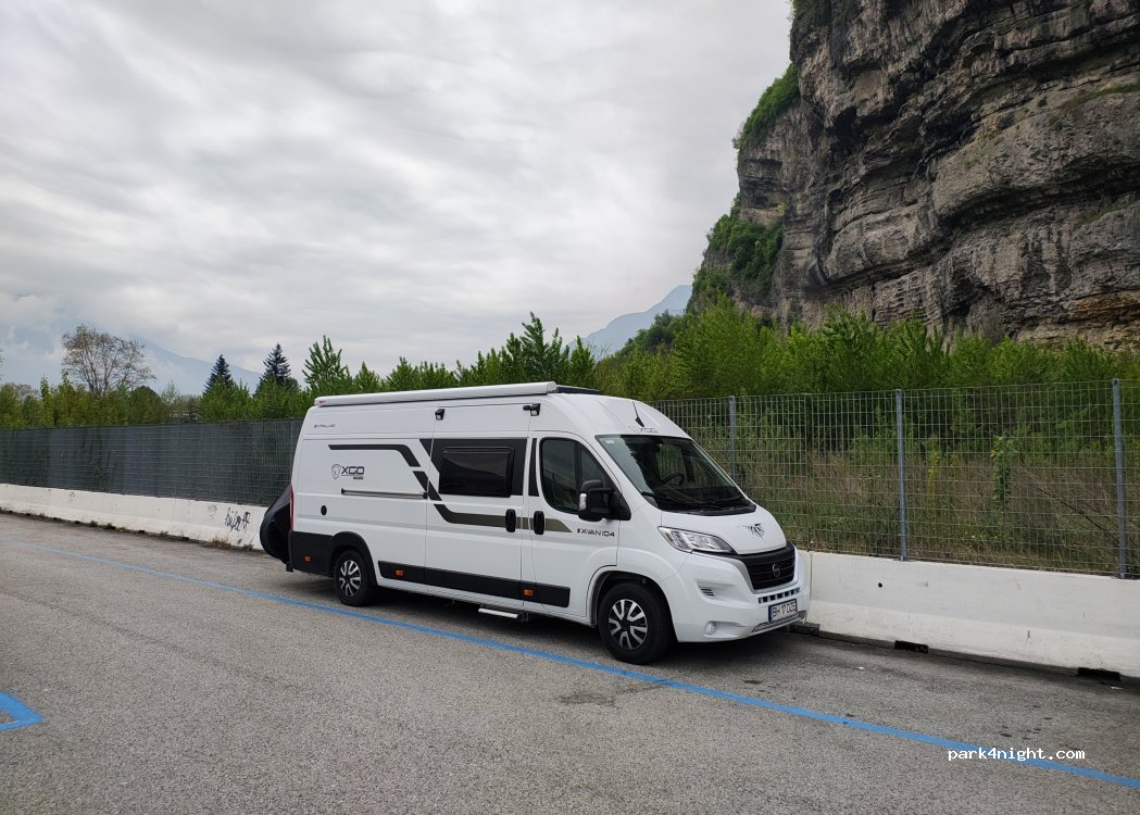 Franchement c’est bien, on cherchait un parking proche de la ville de Trento, il n’y a pas de limitations de hauteur (nous avions un camping car de 3m de haut). On y a passé la nuit et il est resté toute la matinée au parking sans problèmes, c’est payant mais pratiquement personne ne paye !
