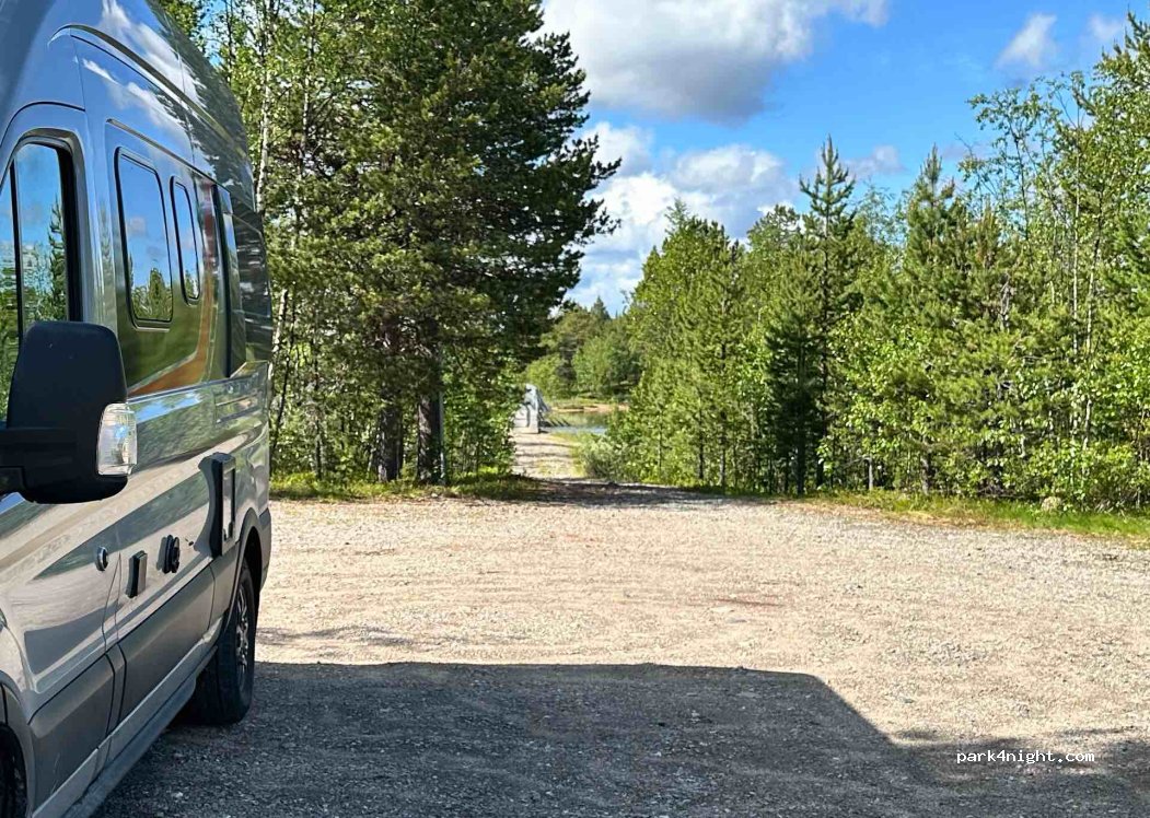 Perfect plekje. Eerste stukje beetje hobbelig, maar toch goed te doen. Plaats zelf is heel mooi ! Vlak grind waar zeker plaats is voor vier campers. Wel wat muggen.. Maar daar ontkom je niet aan bij het water.