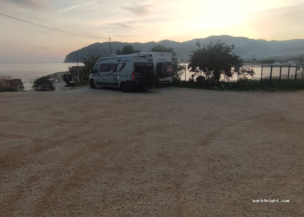 Parkplatz direkt am Meer bzw. Hafen. Haben dort 2 ruhige Nächte verbracht. Im Hafen gibt es eine kostenlose Slipanlage, die man auf Nachfrage benutzen darf. Die Buchten um den Strand herum, erreicht man nur mit Boot, sie sind aber wunderschön!!! Eine Bootstour lohnt sich. Man sollte unbedingt die Pizzeria unten am Strand besuchen: die Pizza ist sehr lecker und der günstige Preis unschlagbar!!!