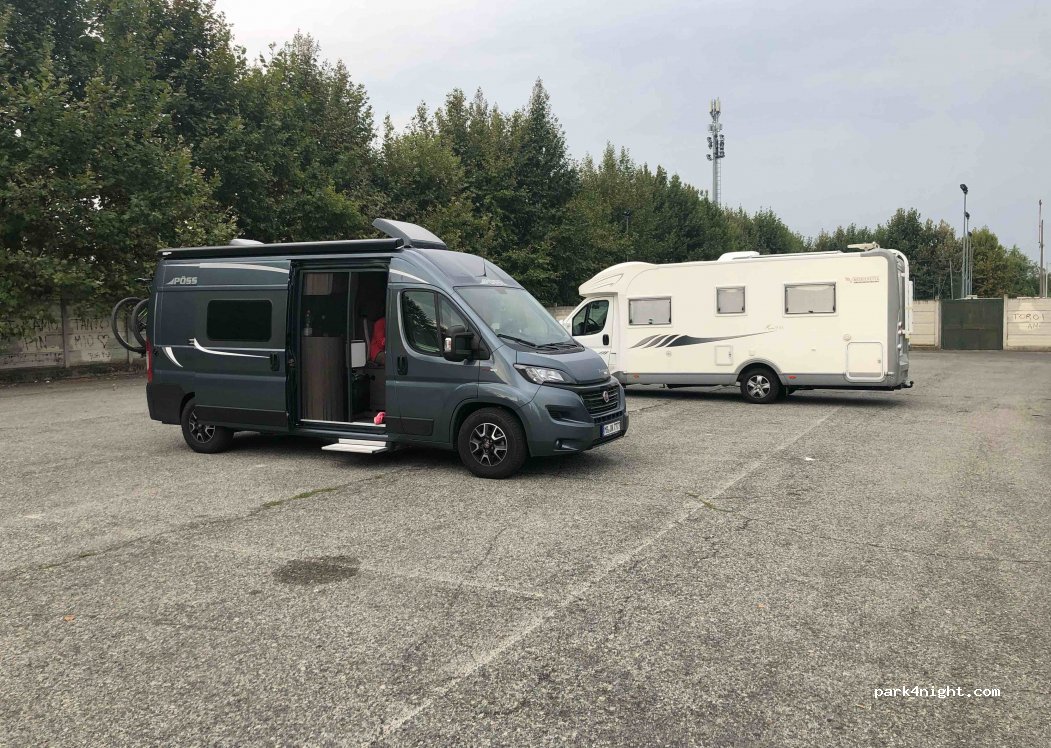 Espace de stationnement gratuit qui est désigné comme un espace de stationnement pour bus. Rien de spécial, mais bien adapté pour une nuit en transit. Aire de jeux sur le chemin de la ville. Vous n'êtes pas obligé de voir la ville elle-même.