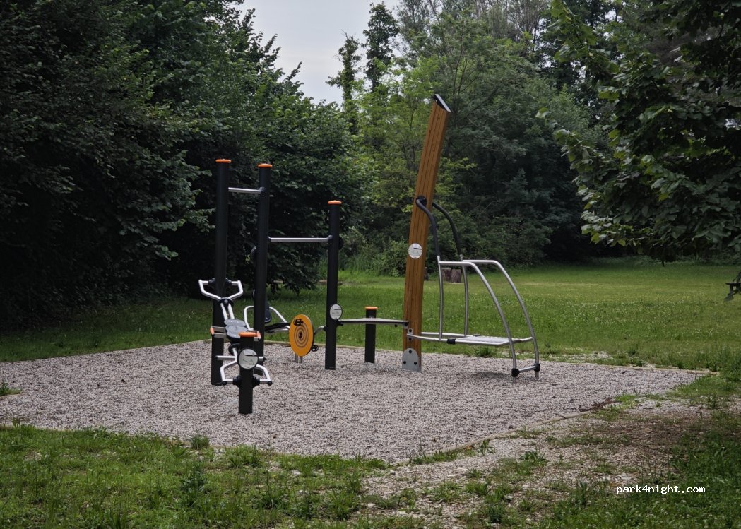 Ausgestatteter Picknickplatz in der Nähe des Ragogna-Sees. Außerdem gibt es ein Outdoor-Fitnessstudio.