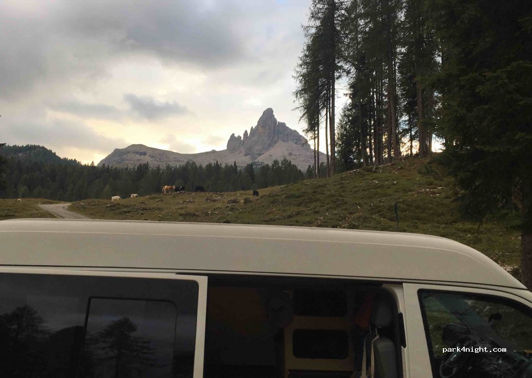Lots of flies. But they are not as annoying as mosquitoes. We stayed here 2 nights. Had a great dinner after Croda de lago trail which took us approx 6 hours. No problem at staying here but I advise to go ask at the restaurant. They speak English. Camping in all Dolomites is prohibited! Funny fact, donkeys are racing down the hill near the parking lot.