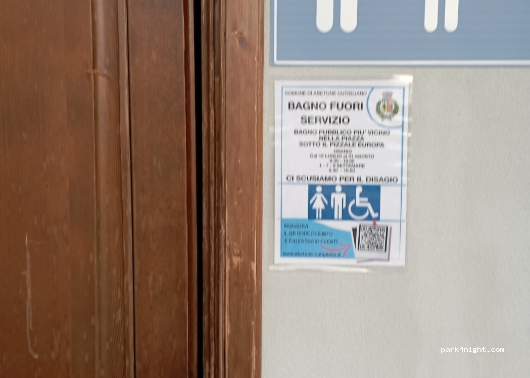 Parcheggio a pagamento dalle 7:00 alle 20:00 20 posti. Servizi igienici in loco chiusi al momento senza data presunta di riapertura.