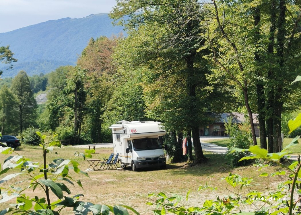Super Camping ! Bien placé au bord de la rivière Soca avec un accès direct. Beaucoup de place et plutôt bien ombragés. Personnel très sympathique, on peut payer par CB. Restaurant très bon avec un cadre super agréable ! Les sanitaires sont propres et en bon état général ! Possibilité de vider les eaux usées et faire le plein d’eau potable. 55€ la nuit en van sans électricité, 2 adultes et 2 enfants.