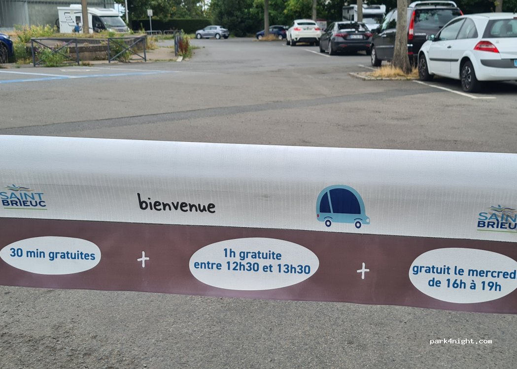 Parking pas chere en bord de route mais st brieuc mal frequenter nous somme rester 30 min et nous somme . Nous nous sentions pas en securite dans cette ville