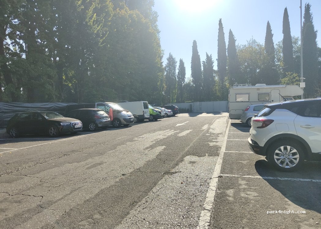 Parcheggio auto o camper entro i 6 metri. Ho visto 2 camper,che sporgevano dalle linee bianche, con multa sul parabrezza. Non perdete tempo, cercate altro.