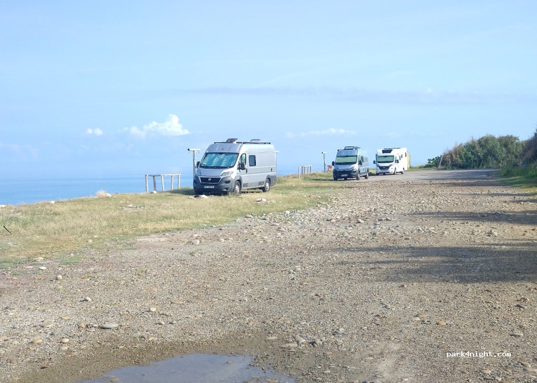 Stop on a dirt road by the sea. Quiet parking space, you arrive from a very narrow two-way street. It is good for van vehicles.