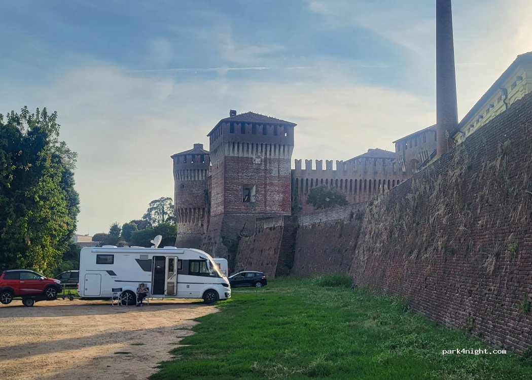 Wir sind hier am Donnerstag nachmittag angekommen und der Parkplatz war fast leer. In der Nacht waren wir ganz alleine hier und es war sehr ruhig. Der Platz ist gut beleuchtet und sicher. Am Morgen war der Parkplatz voll, auch 4 Polizeiautos standen neben uns. Es ist auch schön, durch den Ort zu bummeln. Am Abend haben wir im Restaurant ADAMO sehr gut gegessen. Wirklich ein schöner Platz.