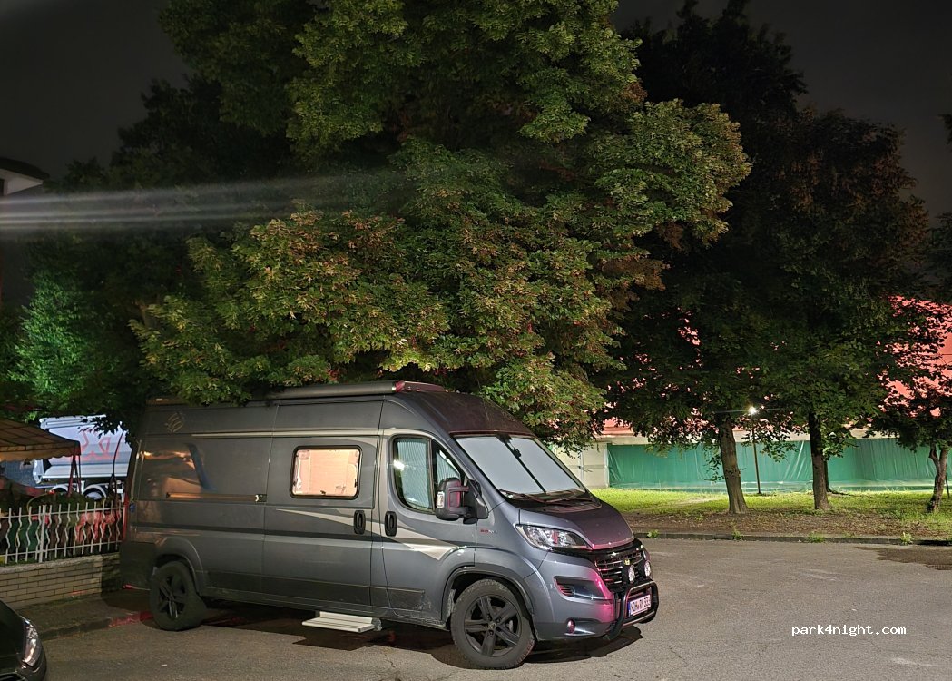 Illuminated parking lot on the edge of a residential area. Quite noisy because of the nearby motorway, but completely ok for one night! Especially when you are passing through, very well located, as it is close to the motorway entrance.